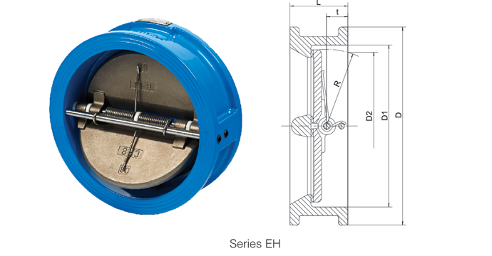 EH Series Dual plate wafer check valve is with two torsion springs added to each of pair valve plates, which close the plates quickly and automatically, that can prevent the medium from flowing back.The check valve can be installed on both horizontal and vertical direction pipelines.